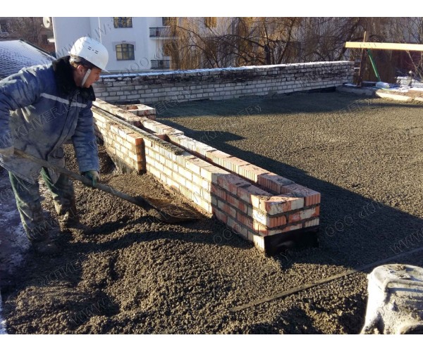 Получившийся состав подают на крышу с использованием специальной техники – гидравлической машины или растворонасоса. При помощи данного оборудования можно поднимать растворы на высоту до 90 метров, но с оговоркой на то, что разуклон от горизонта будет не больше 20 градусов.